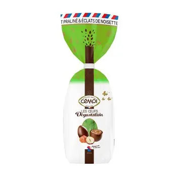 Découvrez la combinaison de praliné fondant et de noisette croquante dans nos œufs en chocolat au lait DEGUSTATION, fabriqués en France dans notre chocolaterie à Troyes.
