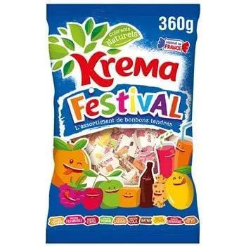 Découvrez Krema Festival, un assortiment délicieux de bonbons moelleux qui présentent des saveurs et des couleurs 100 % naturelles, et qui sont fabriqués sans gélatine. Ce sachet de bonbons met en avant le meilleur des confiseries françaises, offrant une variété de douceurs qui conviennent à toutes les envies de sucré. Profitez du goût authentique des bonbons Krema, confectionnés en France avec des ingrédients de haute qualité pour une expérience vraiment satisfaisante.