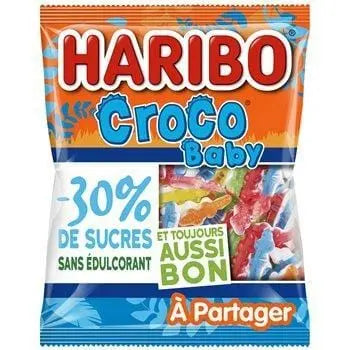 L'iconique Croco en version bébé, toujours aussi bon et avec 30% de sucre en moins. Tenir à l'écart de la chaleur et de l'humidité. Peut contenir des traces de blé, de lait.