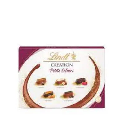 Alliant une passion pour le chocolat et l'inspiration pour la pâtisserie, les Maîtres Chocolatiers de Lindt ont créé les CREATION Petits Éclairs, une variété de 5 chocolats irrésistibles en bouchées, présentant les recettes d'éclairs les plus gourmandes. Cet assortiment contient 35 bouchées de chocolat au lait et noir.