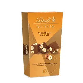 Découvrez l'expérience de chocolat Lindt la plus incroyable avec des noisettes ! NUXOR Lait est une combinaison parfaite de textures grâce à des ingrédients de haute qualité : la crémeux du gianduja au chocolat au lait et le croquant des délicates noisettes grillées, soigneusement sélectionnées par les Maîtres Chocolatiers de Lindt. Une forme cubique unique, délicatement enveloppée dans un élégant papier doré, à offrir ou pour se faire plaisir !