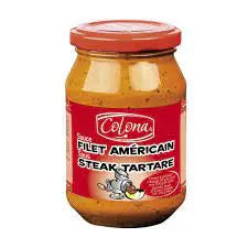 eau, huile végétale, purée de tomate, sel, amidon de maïs, moutarde (eau, graines de moutarde, sel, vinaigre, curcuma), sucre, oignons, herbes & épices, dextrose, jaunes d'œufs, extraits naturels & arômes, antioxydant : acide ascorbique, épaississant : gomme de cellulose, conservateur : sorbate de potassium, colorant : extrait de paprika.