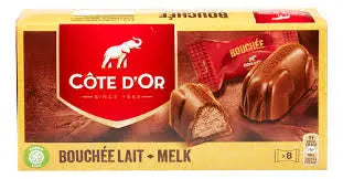 Offrez-vous un goût du patrimoine chocolatier belge avec Côte d’Or Bouchee au Lait. Ces élégants carrés de chocolat au lait sont remplis d'un praliné luxueusement lisse élaboré à partir de noisettes et d’amandes. Individuellement emballés et parfaitement portionnés, ils sont idéaux pour partager—ou garder juste assez de plaisir pour vous-même.