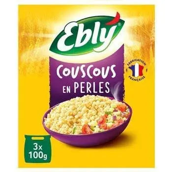 Chaque paquet contient trois sachets pratiques de 100g, rendant le portionnement et la préparation sans effort. Qu'il soit servi chaud en accompagnement ou froid dans une salade rafraîchissante, Ebly Couscous en Perles ajoute de la polyvalence et une touche gourmande à vos créations culinaires.