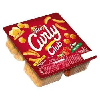 Sémoule de maïs, ARACHIDES grillées moulues 20 %, huile de tournesol, poudre de tomate 3 %, sel, LACTOSERUM, FROMAGE 0,4 %, paprika, arômes naturels, dextrose de BLÉ, extraits d'épices. Traces possibles de NOIX et de GLUTEN.
