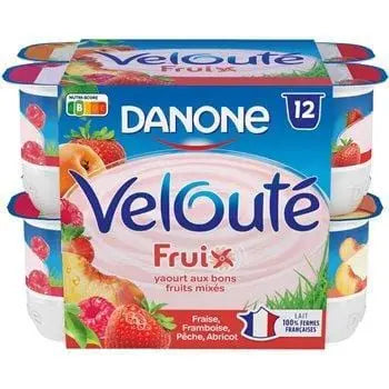 Le Velouté Fruix de Danone à la fraise, framboise, pêche, abricot est un yaourt aux fruits élaboré avec de bons fruits, des ferments ainsi que du bon lait entier et une touche de crème, tous provenant de France. Ce yaourt aux fruits mélangés, avec une texture lisse et crémeuse, est exempt de colorants* artificiels et de conservateurs, et fabriqué dans notre laiterie à Villecomtal (32) ou St-Just-Chaleyssin (38) ! La couleur de ce yaourt est apportée par des concentrés de fruits et de légumes. Ce yaourt aux fruits est donc un dessert idéal à partager en famille !