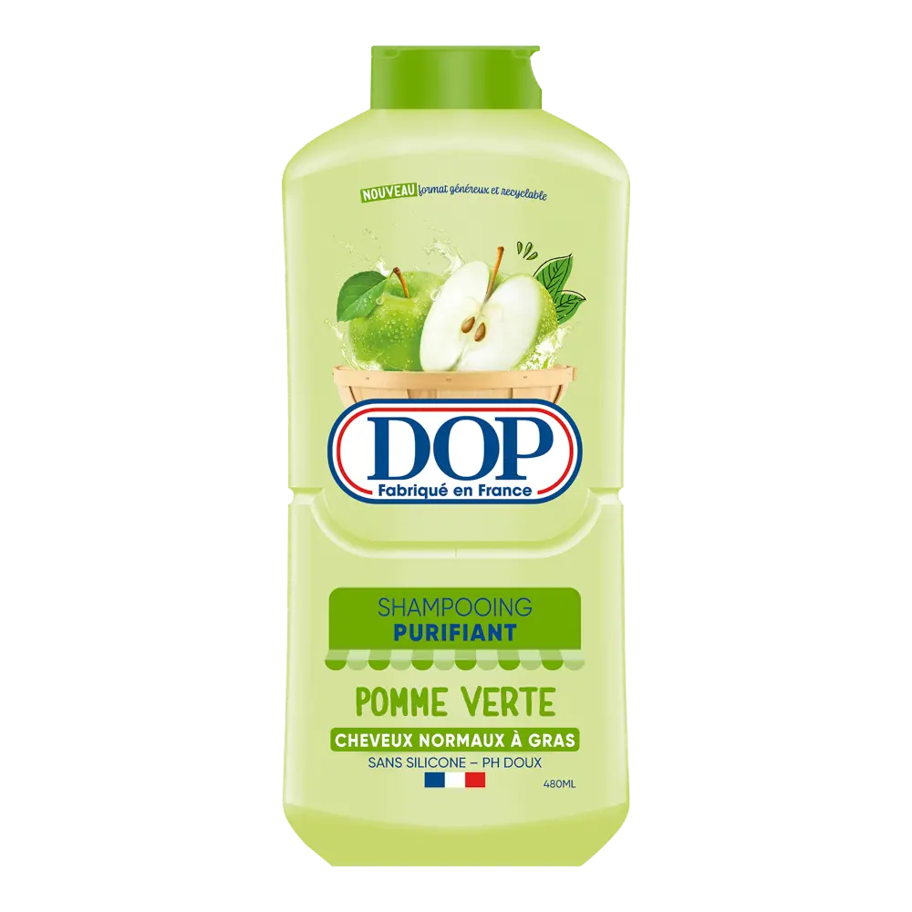 Le shampoing DOP Très Doux à la Pomme Verte est formulé pour nettoyer et purifier les cheveux normaux à gras. Enrichi en extrait de pomme verte, connu pour ses propriétés purifiantes et tonifiantes, ce shampoing élimine les impuretés, laissant les cheveux frais et légers. Sa formule sans silicone et au pH neutre garantit un soin doux pour un usage quotidien, adapté à toute la famille.