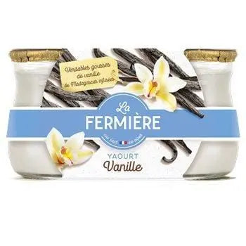 Lait entier, crème, 7,5% de sucre, ferments lactiques, infusion de gousse de vanille de Madagascar. Lait et crème : origine France