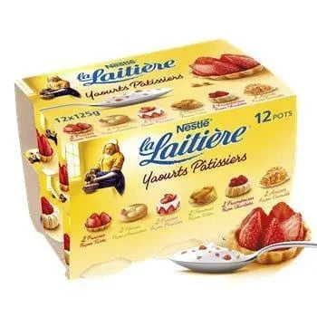 Les yaourts Pâtisserie de La Laitière sont le mariage de morceaux de biscuits, de tendres morceaux de fruits et de la fraîcheur d'un yaourt crémeux. Ces yaourts sont fabriqués à Andrézieux (Rhônes-Alpes) avec du lait provenant de France.