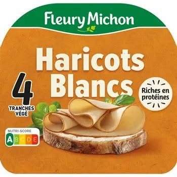 Eau*, haricots blancs (origine France) 19,7 %, poudre de blanc d'œuf, huile de colza, amidon, bouillon (eau, carottes, oignons, plantes aromatiques, CÉLERI, sel, huile de colza, épices), extrait végétal, sel, arômes naturels, conservateur : vinaigre tamponné, poivre, colorant : caramel ordinaire. * Nous avons besoin de beaucoup d’eau pour cuire les haricots blancs afin d’obtenir une tranche délicieuse qui, en fin de compte, contient moins d’eau qu’une tranche de jambon.