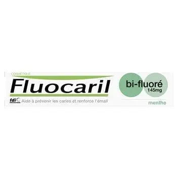 Le dentifrice Fluocaril Bi-Fluoré 145mg Menthe aide à prévenir les caries, à renforcer l'émail et à maintenir une haleine fraîche. Sa formule bi-fluorée (fluorure de sodium et monofluorophosphate de sodium) aide à prévenir les caries et renforce l'émail. En plus de son goût rafraîchissant à la menthe, le dentifrice Fluocaril Bi-Fluoré 145mg Menthe nettoie en profondeur les dents, aide à éliminer la plaque et aide à prévenir les caries. Le fluorure agit également pour prévenir les attaques acides en empêchant la croissance des bactéries dans la cavité buccale, même après le brossage. Il contient également du zinc, un ingrédient actif antibactérien qui élimine les bactéries responsables de la formation de plaque et aide à lutter contre la mauvaise haleine. La Fédération Dentaire Internationale (FDI) reconnaît que se brosser les dents deux fois par jour avec un dentifrice fluoré tel que le Fluocaril Bi-Fluoré 145mg Menthe aide à maintenir une bonne santé dentaire.