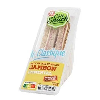 Ce produit est une délicieuse combinaison de pain complet, de jambon cuit standard, de mayonnaise allégée et d'emmental. Il est fabriqué en France avec du porc et de la farine de blé provenant de l'Union européenne. Veuillez noter que ce produit peut contenir des traces de noix, de poisson, de graines de sésame et de soja.