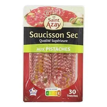 Viande de porc (origine : France), pistaches (9 %), lactose, sel, poivre, dextrose, sucre, ail, conservateur : E252, ferments lactiques, antioxydant : E316.