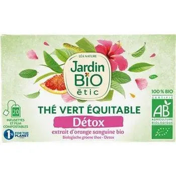 Thé vert* 53%, menthe douce* 14%, pissenlit* 10%, bouleau* 6%, bardane*, hibiscus* 5%, extrait d'orange sanguine* 5%, extrait de menthe*. *Produits issus de l'agriculture biologique. 77% des ingrédients totaux d'origine agricole respectent les normes de commerce équitable.