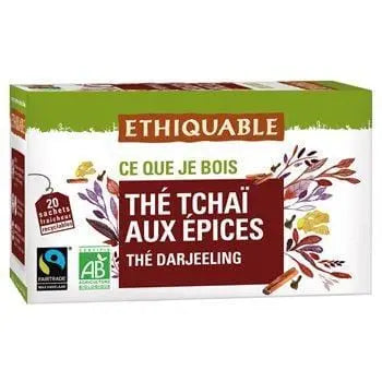 Découvrez le célèbre chai indien dans une version équitable et biologique. Laissez-vous transporter par son mélange d'épices : cannelle, cardamome, gingembre et clous de girofle. De vraies épices naturelles et pas d'arômes !