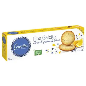 Choisissez les galettes fines Gavottes au citron et aux graines de pavot pour un biscuit sophistiqué qui allie la finesse de la pâtisserie française à des notes d'agrumes rafraîchissantes. Leur texture aérienne et leur saveur aromatique en font une friandise exceptionnelle pour des occasions spéciales ou des plaisirs quotidiens. Que ce soit sur un plateau de desserts ou savouré lors d'un thé de l'après-midi, ces biscuits apportent une touche de soleil dans chaque courbe croustillante.