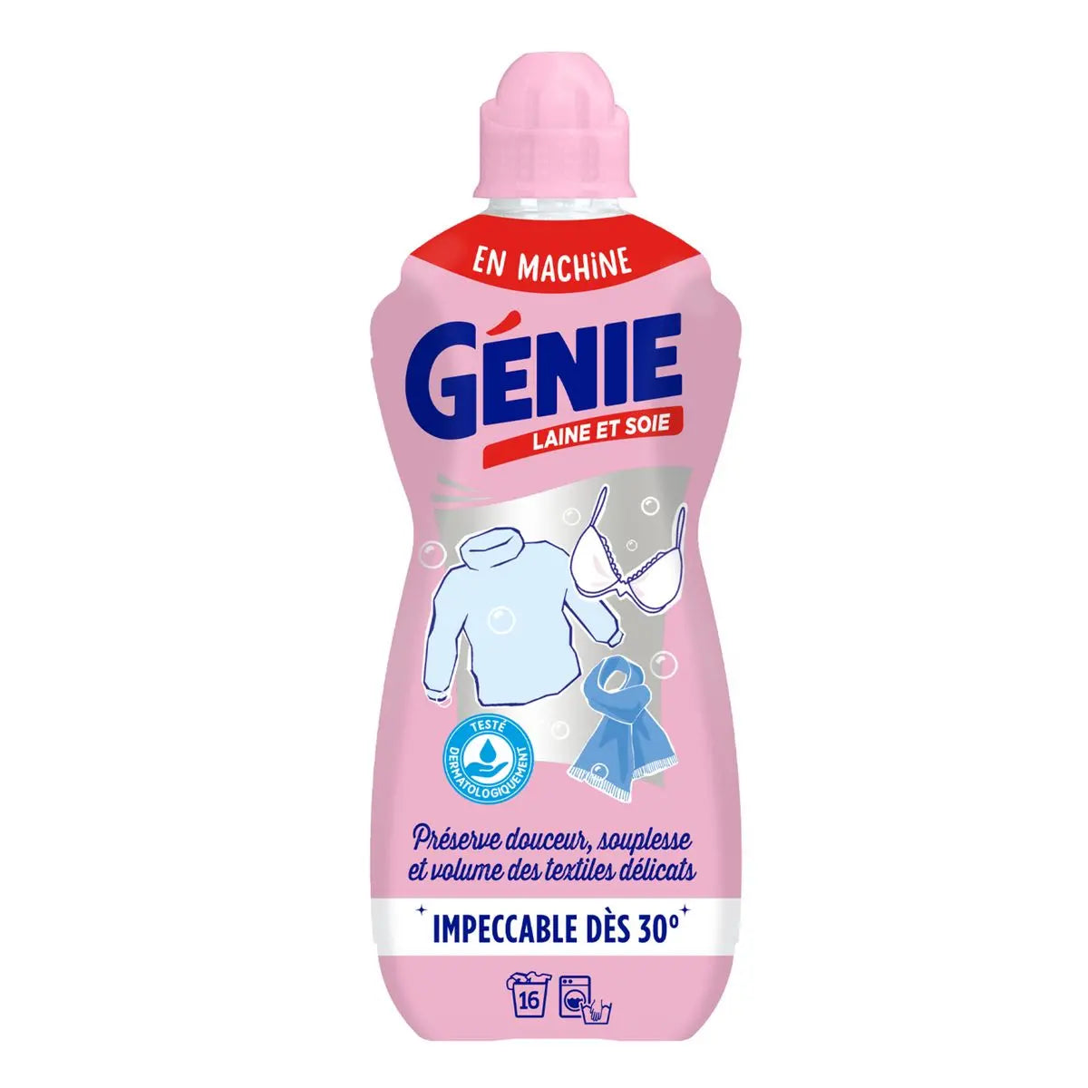 La formule Genie pénètre au cœur de vos textiles fragiles pour les protéger et préserver leur forme, leur souplesse et leur volume ; aide à prévenir le peluchage et le feutrage ; laisse vos vêtements propres et parfumés. GENIE LAINE ET SOIE 1L