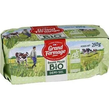 Notre beurre entier exclusif est fabriqué à partir de lait 100 % biologique, lui donnant une belle couleur jaune et une texture plus douce.