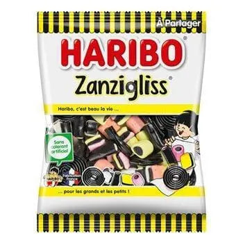 Sirop de sucre de mélasse, sucre, farine DE BLÉ, sirop de glucose, amidon, dextrose, graisse de palme, extrait de réglisse (0,9%), maltodextrine, sel, gélatine, acidifiant : acide citrique, concentrés de fruits et de plantes : carthame, spiruline, betterave rouge, sirop de sucre inversé, arôme, colorant : curcumine, agents de glaçage : cire d'abeille blanche et jaune, cire de carnauba. À conserver à l'écart de la chaleur et de l'humidité. Peut contenir des traces de lait.