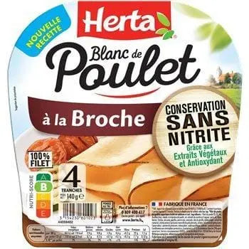 Découvrez la nouvelle gamme de poitrine de poulet Préservation Sans Nitrite grâce aux extraits de plantes et antioxydants d'HERTA : la première* poitrine de poulet sur le marché avec une méthode de conservation sans nitrite. Une recette simple et savoureuse qui combine le bon goût de la volaille avec du romarin. La nouvelle gamme de poitrine de poulet a également une texture plus généreuse qui permet une meilleure mastication pour le plaisir des familles au quotidien. *La première marque distribuée à l'échelle nationale
