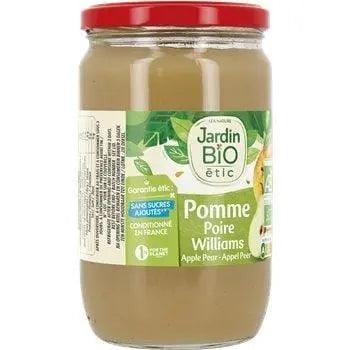 Purée de pomme* 70%, purée de poire* 30%, antioxydant : acide ascorbique. *Produits issus de l'agriculture biologique.