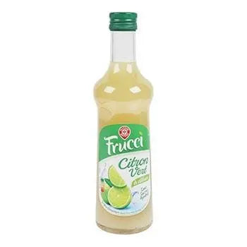 Ce produit contient de l'eau, du jus de citron vert à partir de concentré (40%), de la pulpe de citron et de l'arôme naturel de citron vert, avec de l'acide citrique comme acidifiant.