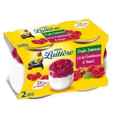 La Laitière a préparé une généreuse quantité de framboises déposées sur son délicieux yaourt lisse pour un goût fruité intense.