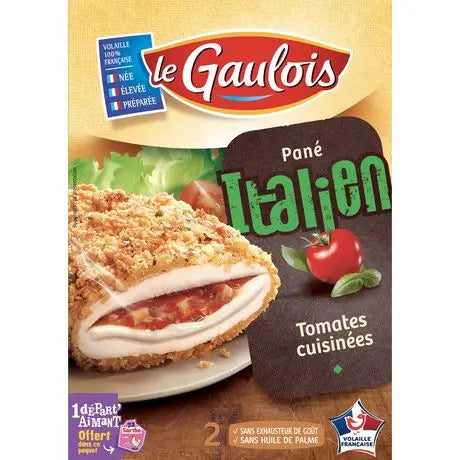Une saveur italienne panée avec sauce tomate, mozzarella et chapelure parfumée au basilic et à l'origan. 100% volaille française et une recette sans huile de palme et sans exhausteur de goût.