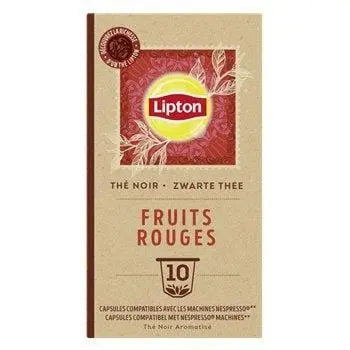 Les capsules de thé noir aux fruits rouges Lipton® 10 Capsules évoquent un goût gourmet et des fruits d'été. Revigorant, indulgent, savoureux avec ses notes de framboises, fraises et cerises, ce délicieux thé est une douce friandise rappelant des bonbons. Ses notes acidulées raviront les amateurs de thé à la recherche d'un moment sucré, sans les inconvénients du sucre. Lipton® a utilisé son expertise pour créer une gamme de capsules de thé uniques et savoureuses (thé vert et thé noir) ainsi que des infusions compatibles avec votre machine Nespresso®. Ces capsules de thé vous permettent de préparer votre boisson chaude de manière rapide et facile. En partenariat avec TerraCycle, Lipton® recycle ses capsules et leur donne une seconde vie. Le carton de cette boîte est certifié PEFC et provient de forêts gérées durablement et de sources contrôlées. Lipton® s'engage pour la durabilité avec sa certification Rainforest Alliance. Tous les thés Lipton® proviennent de plantations certifiées Rainforest Alliance pour un thé plus respectueux des agriculteurs et de l'environnement. Lipton® s'engage à soutenir les petits agriculteurs à travers sa politique de durabilité.