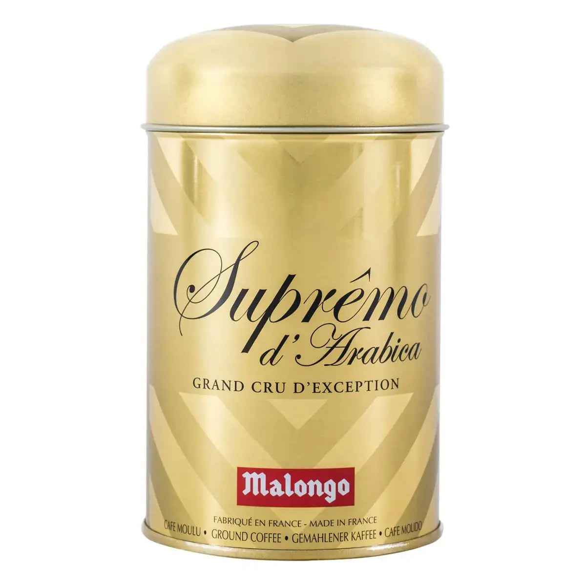 Malongo Café Moulu Arabica Suprême 250g is a finely ground premium coffee made from 100% carefully selected Arabica beans. Expertly roasted using Malongo’s traditional slow-roasting method, this coffee delivers a smooth, aromatic cup with subtle notes of fruit and a well-balanced intensity. Ideal for filter coffee makers, cafetières, and espresso machines compatible with ground coffee, it offers refined flavour and consistent quality in every brew.