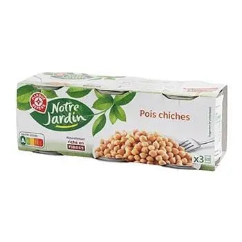 Ce produit est fabriqué à partir de pois chiches trempés, d'eau et de sel. Il peut contenir des traces de soja et de céréales contenant du gluten. Les pois chiches utilisés dans ce produit proviennent d'Argentine, du Canada, de France, d'Italie, de Russie, d'Espagne et/ou d'Ukraine, selon les approvisionnements et/ou les caractéristiques gustatives recherchées.