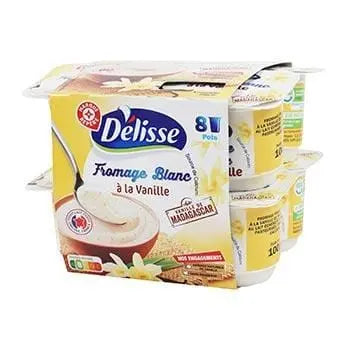 Fromage blanc Délisse vanille - 2,5 % de matière grasse - 8x100g est un fromage blanc crémeux et légèrement sucré infusé avec de la vanille naturelle de Madagascar. Fabriqué à partir de lait écrémé et de crème d'origine française, il offre une texture lisse et une délicate saveur de vanille, ce qui en fait un choix idéal pour un dessert léger ou une collation. Chaque paquet contient huit portions de 100g, parfaites pour un plaisir quotidien.
