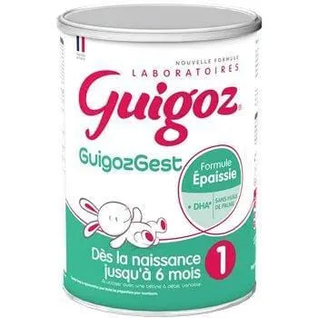 Les Laboratoires Guigoz ont développé Guigoz Guigozgest, une formule épaissie adaptée au régime spécial des nourrissons dès la naissance lorsqu'ils ne sont pas allaités et jusqu'à 6 mois. Cela contient du DHA, un acide gras polyinsaturé à chaîne longue de la famille des Oméga. Veuillez consulter votre médecin avant utilisation. Utilisez avec une tétine à débit variable comme l'exige la réglementation.