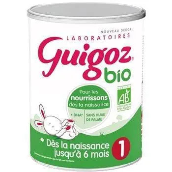 Guigoz Bio est une formule développée avec des ingrédients agricoles issus de l'agriculture biologique, contribuant au respect de l'environnement et de la biodiversité. Le lait provient de vaches principalement élevées en plein air et nourries avec des fourrages de pâture conformément à des règles de conduite strictes. Guigoz répond aux besoins spécifiques de l'alimentation de votre bébé dès la naissance lorsqu'il n'est pas allaité jusqu'à 6 mois. Cette formule contient DHA, un acide gras polyinsaturé à longue chaîne de la famille des Oméga, comme l'exigent les réglementations pour les formules infantiles.