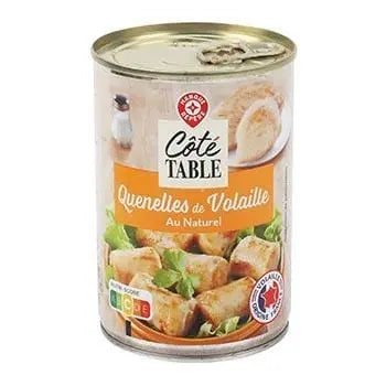 Ce produit contient 31% de farine de blé, de la graisse de boeuf, de l'eau, 13% de viande de dinde (origine : France), du blanc d'œuf, 2% de sel, du gluten de blé et des protéines de lait. Le liquide de couverture est de l'eau.
