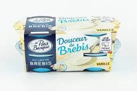 Lait de brebis (origine : France), crème de brebis (origine : France), amidon de riz, ferments lactiques (y compris le lait).