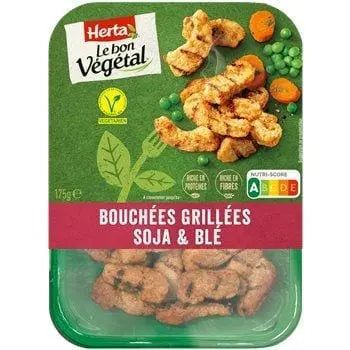 HERTA LE BON VÉGÉTAL : enfin un légume qui a bon goût ! Offrez-vous nos bouchées de soja et de blé grillées, assaisonnées de poivre et d'oignons pour le plaisir de toute la famille. Une recette riche en protéines et en fibres, à cuire à la poêle ou au four. Astuce : les bouchées de soja et de blé grillées sont délicieuses avec une ratatouille provençale.