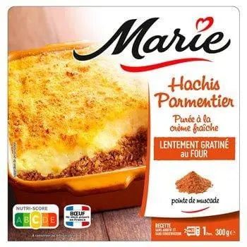 Marie sélectionne du bœuf de France garanti par un organisme de contrôle indépendant. Comme le gratin est l'expertise de Marie, son parmentier est lentement gratiné au four avec de la chapelure.
