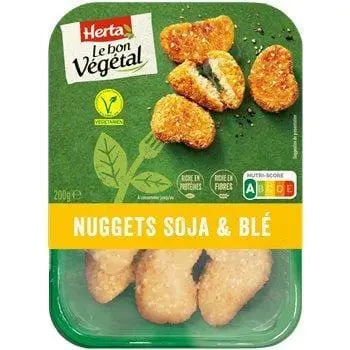HERTA LE BON LÉGUME : enfin, un légume qui a bon goût ! Découvrez nos délicieux Nuggets de Soja et de Blé, assaisonnés avec des oignons et enrobés de chapelure de sésame qui raviront vos enfants. Une recette riche en protéines et en fibres, à cuisiner à la poêle ou au four. Conseil : vos enfants adoreront les Nuggets de Soja et de Blé avec une sauce moutarde douce rapide.
