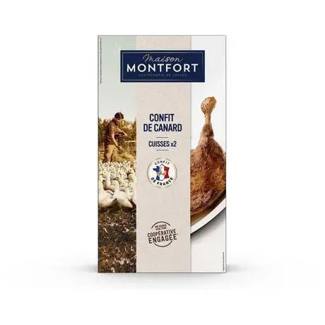 Les Cuisses de Canard Confit Montfort (x2) 400g offrent le goût riche et savoureux de la cuisine française traditionnelle avec ses cuisses de canard confites préparées avec expertise. Chaque cuisse est cuite lentement à la perfection, offrant une viande tendre et savoureuse qui se détache de l'os. Idéales pour créer des repas gourmets à la maison, ces cuisses de canard confites apportent l'excellence culinaire française authentique à votre table. Que vous les serviez avec des pommes de terre, dans une salade, ou en tant que plat principal, les cuisses de canard confites de Montfort offrent un moyen pratique et délicieux de savourer un plat classique.