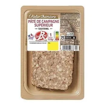 Ce produit est fabriqué à partir de viande de porc d'origine française, de foie de porc, de graisse de porc, d'oignons, d'œuf entier frais, d'amidon, de sel, de saccharose, d'épices et de plantes aromatiques, et d'arômes naturels. Il est décoré avec du chou-fleur de porc et coloré avec du caramel ordinaire. Veuillez noter qu'il peut contenir des traces de lait, de gluten et de noix. Ce produit est fièrement fabriqué en France.