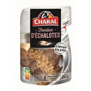 Échalotes (52 %), eau, vin blanc 8 % (y compris SULFITES), huile de tournesol, oignons rôtis, sel, amidon de maïs transformé, sucre, vinaigre, arôme, sucre caramélisé.
