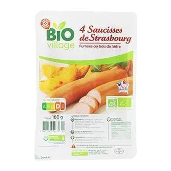Viande de porc provenant de France (81 %), eau, sel, sirop de glucose, dextrose, arômes naturels, acidifiant : E331, épices et plantes aromatiques, conservateur : E250. Enveloppe naturelle de mouton.