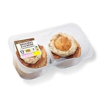 Ce produit est un mélange délicieux de pâte feuilletée, de lait demi-écrémé, de crème liquide, de filet de poulet cuit rôti, de jambon cuit, de champignons de Paris, de beurre, de farine de blé, de jaune d'œuf, de bouillon de veau aromatisé, d'amidon de blé, de vin de Madère modifié, de porto dénaturé, de sel, de poivre, et de muscade.