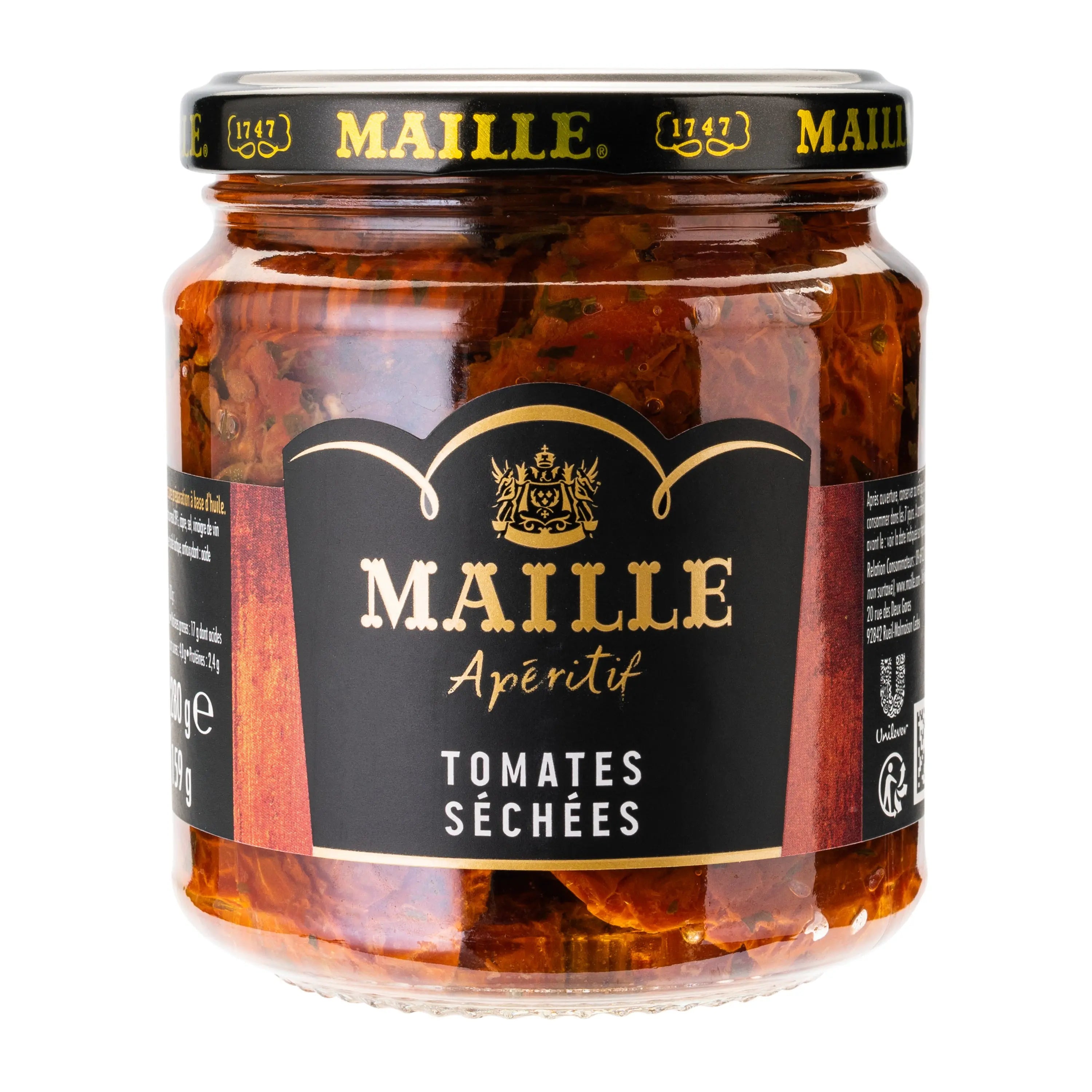 Tomates séchées au soleil débordant de lumière, quelques câpres dans une marinade à l'huile avec une touche de persil et d'ail. Délicieuses seules, pour ajouter de la saveur à vos bruschettas ou dans vos salades composées. Mille et une façons d'exprimer vos idées avec la nouvelle gamme Maille Apéritif : une gamme complète de 4 tartinades spéciales et 3 légumes marinés pour mélanger les saveurs et les textures.