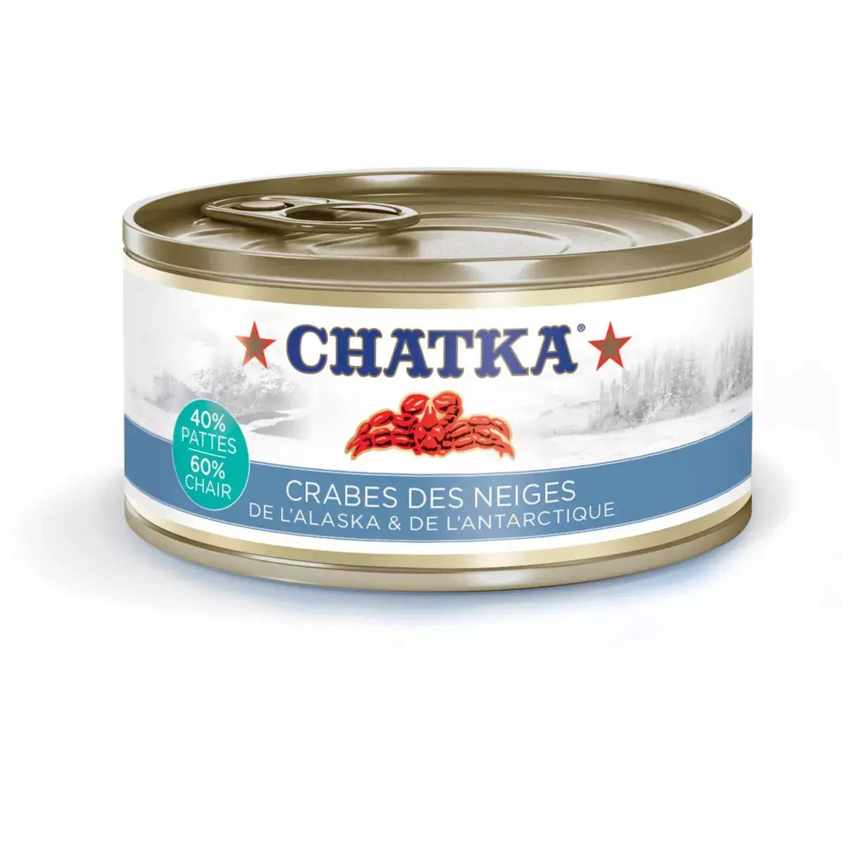 Crabe des neiges antarctiques 70% chair - 30% pattes, eau, sucre, sel, exhausteur de goût : E621, arôme, régulateur d'acidité : E330, conservateurs : E223 (sulfites).