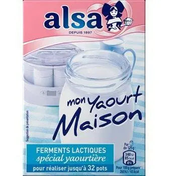 Alsa - Mon Yaourt Fait Maison 8g - Préparation de yaourt facile et rapide. Grâce aux ferments lactiques Alsa, il n'est pas nécessaire d'utiliser des yaourts commerciaux pour préparer vos yaourts faits maison ! Versez un sachet dans 1 L de lait, 8 heures dans la yaourtière et c'est prêt ! Savourez un goût doux, pour un yaourt fait maison facile et inratable. Des idées de recettes sont incluses dans chaque paquet. Pour préparer jusqu'à 32 pots.