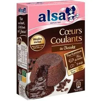 Alsa - Coeur Coulant Chocolat 275g est un mélange à gâteau rapide et facile. Ce délicieux cœur au chocolat avec un coulant unique nécessite seulement 75g de beurre et 2 œufs. Il suffit d'ajouter ces ingrédients au mélange, de verser dans les moules inclus, et de cuire. Ce dessert est facile à préparer, inratable, et un délice pour tous les gourmands. Il ne contient ni colorants ni conservateurs.