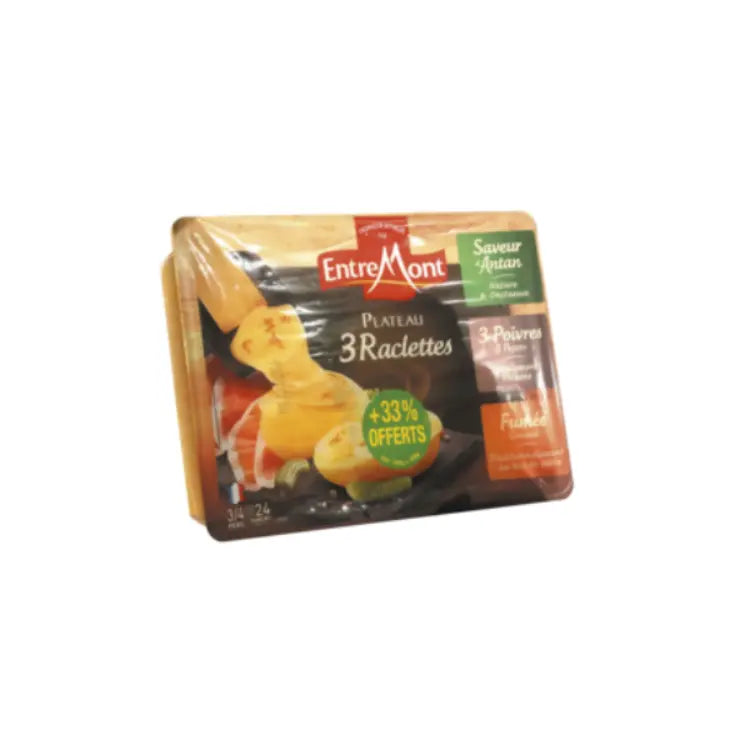 Turn your dinner into a true Alpine feast with Entremont Plateau 3 Raclettes 600g, a gourmet trio of premium raclette cheese varieties crafted for an authentic and flavourful raclette experience. This generous selection brings together three delicious flavours — classic, smoked, and pepper — offering a perfect balance of creamy texture, rich taste, and aromatic depth. Ideal for sharing with family and friends, this raclette platter is designed to make cosy winter evenings and special gatherings even more memorable.